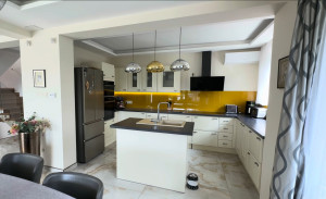 A ház riasztóval, kapucsengővel, központi porszívóval, szúnyoghálókkal, elektromos redőnyökkel, teljesen gépesített konyhával (beépített olajsütővel), hatalmas gardrób- és tárolószekrényekkel felszerelt.