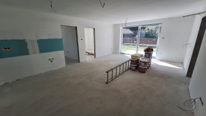 - Előszoba, nappali-konyha-étkező, 3 szoba, kamra, sarokkádas-zuhanyzós fürdő, külön mellékhelyiség + 25nm garázs és 16nm terasz.
