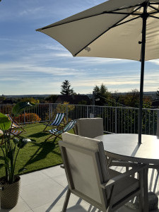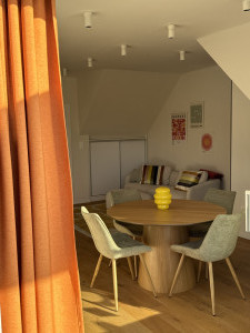 Gödöllő kertvárosi részén, csendes mellékutcában, újépítésű, penthouse jellegű, nappali + 2 szobás, igényesen bútorozott, gépesített lakás kiadó!