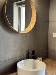 Fűtéséről hőszivattyú gondoskodik padlófűtéssel, ill. vadonatúj Gree Dark Pro 3,5 kW-os klímaberendezés is használható.