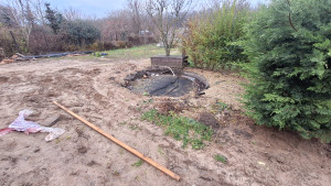 - Kerítés díszkővel, fa vagy acél közökkel.